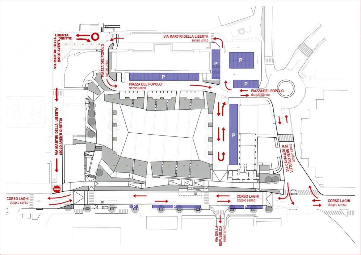 Da oggi è attiva la nuova circolazione definitiva che prevede l’immissione nella piazza dalla rotonda del centro commerciale Le torri e l’uscita con un percorso a senso unico in via Martiri della Libertà e ritorno in piazza del Popolo oppure proseguendo in via Martiri della libertà solo per gli aventi diritto.