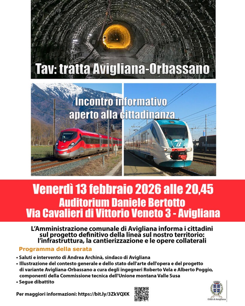 Avigliana, 12 febbraio 2026 – L’Unione Montana Valle Susa, con i Comuni di Avigliana, Caselette e Sant’Ambrogio di Torino, esprime una forte preoccupazione in relazione al progetto definitivo di nuova linea ferroviaria da Avigliana allo Scalo di Orbassano presentato da Rfi.