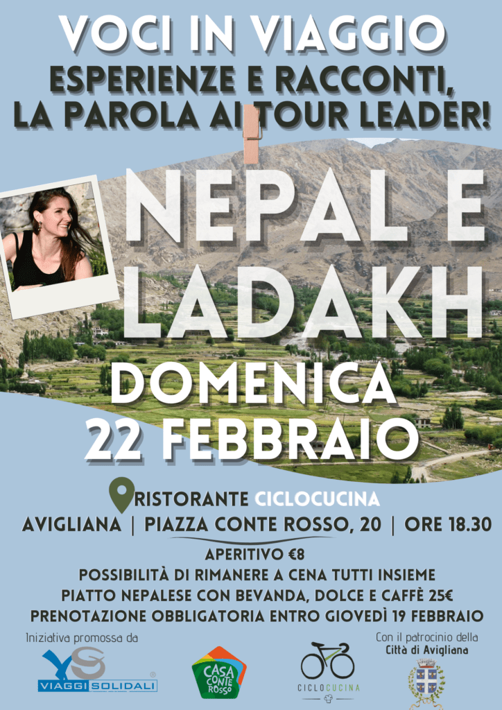 Avigliana, 17 febbraio 2026 – Per la rassegna Voci in viaggio domenica 22 febbraio alle 18,30 si terrà una serata dedicata a Nepal e India-Ladakh, due destinazioni intense, ricche di spiritualità e storie che lasciano il segno. Gli incontri di Voci in viaggio sono organizzati da Viaggi solidali, Casa Conte Rosso e Ciclocucina, da circa due anni con il patrocinio del Comune di Avigliana,