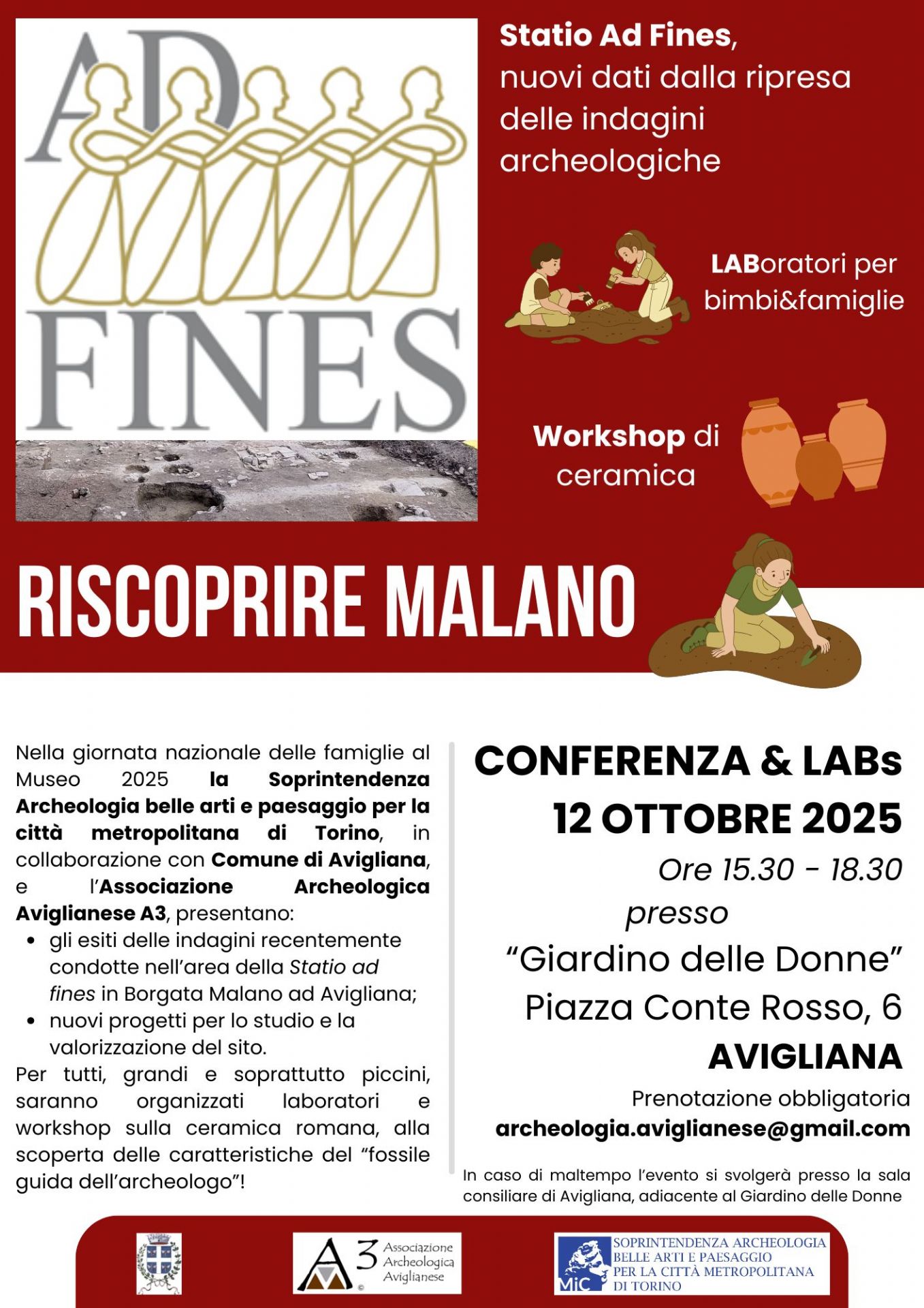 In occasione della Giornata Nazionale delle Famiglie al Museo 2025, la Soprintendenza Archeologia Belle Arti e Paesaggio per la Città Metropolitana di Torino, in collaborazione con il Comune di Avigliana e l’Associazione Archeologica Aviglianese A3, organizza un pomeriggio dedicato alla scoperta del patrimonio archeologico locale.