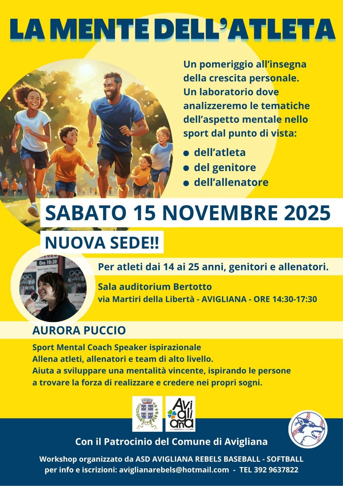 Un pomeriggio dedicato alla crescita personale e allo sviluppo dell’aspetto mentale nello sport, rivolto ad atleti dai 14 ai 25 anni, genitori e allenatori.